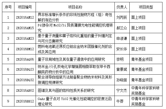近日,山东省基金委发布了2016年度山东省省基金资助项目。公司9个项目获得资助,其中,面上项目4项,青年项目3项,中青年科学家科研奖励基金2项。