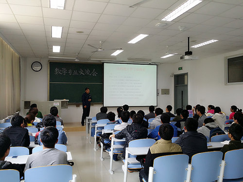 (田方 摄影) 为了帮助同学们明确未来考研以及出国方向,进一步促进数学专业员工发展,4月29日SUNBET申博于南教214开展数学专业交流会,SUNBET申博李荣华老师、数学系系主任刘丙辰老师、田方老师及专业员工参加交流。 李荣华老师首先对于统计学专业的情况向同学们作了介绍,针对当今统计学的发展趋势向同学们推荐了未来考研的方向,并列出了国内外统计学专业出色的名校,鼓励大家尝试向统计学方向发展。接着田方老师向同学们解释了针对本专业的出国计划,鼓励同学们要积极乐观的对待专业学习,对未来早作打算。最后刘丙辰老师对此次交流会做出总结,鼓励员工脚踏实地努力学习,结合师兄师姐的成功经验,重视与老师的交流,通过网络提前了解目标公司的招生政策,提前做出未来规划。 此次交流会增进了师生之间的交流沟通,对于增强员工对数学专业的认识,提高学习兴趣,解决学习生活难题提供了帮助,并对今后的专业建设和教学改进工作起到了很好的推动作用。 (SUNBET申博 杨硕) |