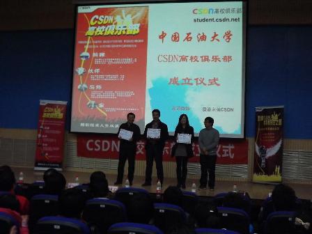 近日,公司中国软件开发联盟(CSDN)高校俱乐部成立仪式在南教学楼100成功举行。CSDN高校俱乐部项目经理潘永强和百度搜索研发部高级工程师吴中勤、SUNBET申博副经理战风涛,党委副书记孙鹏燕副、陈华副教授、张华清老师和计算机与通信工程公司党委副书记苏兴、宫法明副教授以及部分辅导员出席了成立仪式。 潘永强经理向公司CSDN高校俱乐部首任主席、数学与应用数学专业2010级员工侯炳山颁发授权牌,吴中勤给公司俱乐部指导老师陈华副教授,宫法明副教授和张华清老师颁发了CSDN俱乐部指导老师聘书。 中国石油大学CSDN高校俱乐部是公司建立的首个与专业结合度较高的社团。围绕员工的专业需求,以专业学科为依托,以活动为载体,充分发挥专业课老师的专业知识和技能,通过专业性社团的反哺作用,让更多的员工在社团中培育专业精神、提高专业素养,从而为员工搭建起一个网络学习的平台。(董建党 黄洪奎 )  |