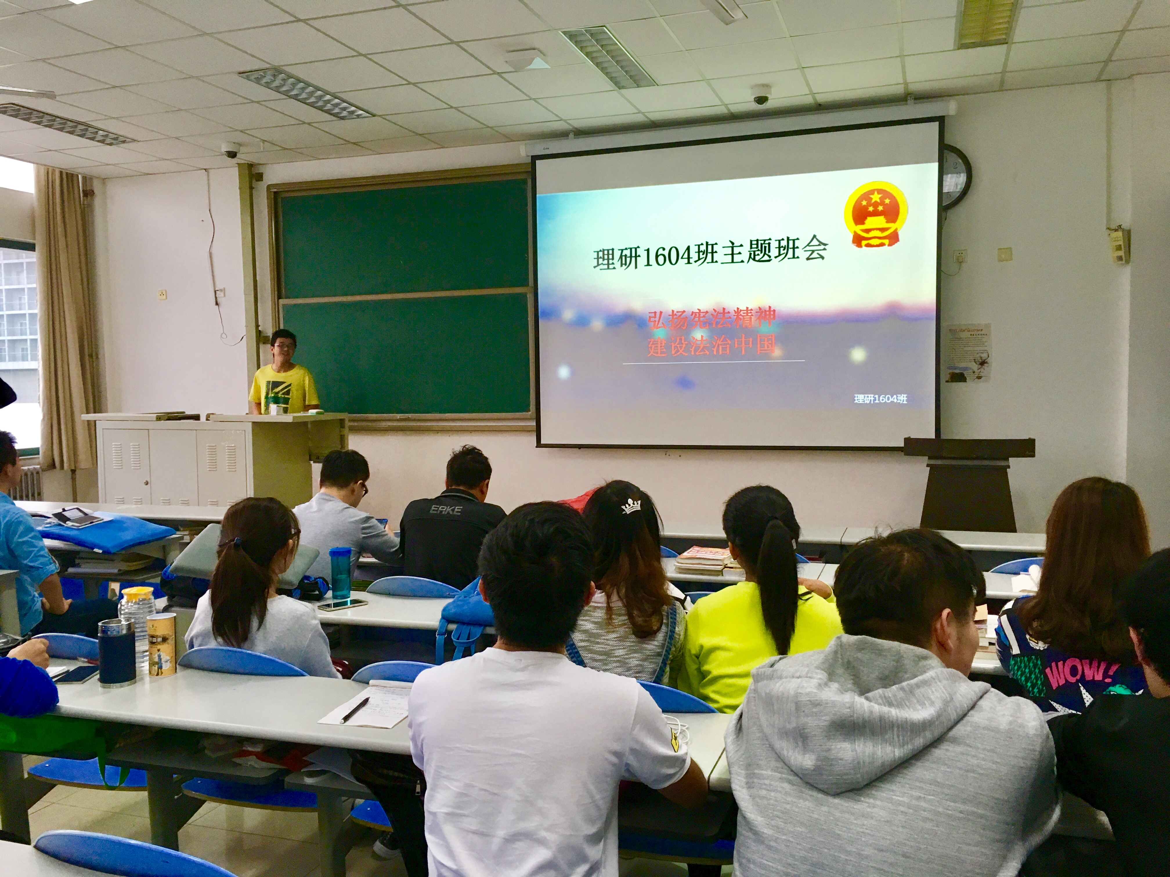 (班会现场 李禹辰摄) 为了弘扬宪法精神,形成学习宪法知识、维护宪法权威的浓厚氛围。10月20日下午,理研1604班全体成员于南堂518教室开展了“学宪法讲宪法”主题班会。 本次班会采用分组交流的形式,各小组分享学习心得。梁绍祥简述了班会的主题后,张九阳向同学们介绍了宪法总纲,并明确指出同学们应当拥护共产党的领导。随后,张硕从宗教方面提醒同学们必须在法律范围内从事宗教活动;王洪博、李白和李静等同学先后向同学们介绍了国家机构和基本国情;房屹和贾元东则向同学们介绍了生活中如何通过法律维护自身合法权益。 此次主题班会,展现了研1604班学子的风采,加强了同学们对宪法的认识,达到了法进校园的目的,使同学们了解宪法知识、增强法治观念、弘扬宪法精神。 (SUNBET申博 梁绍祥 张琰) (审核 李珂) |