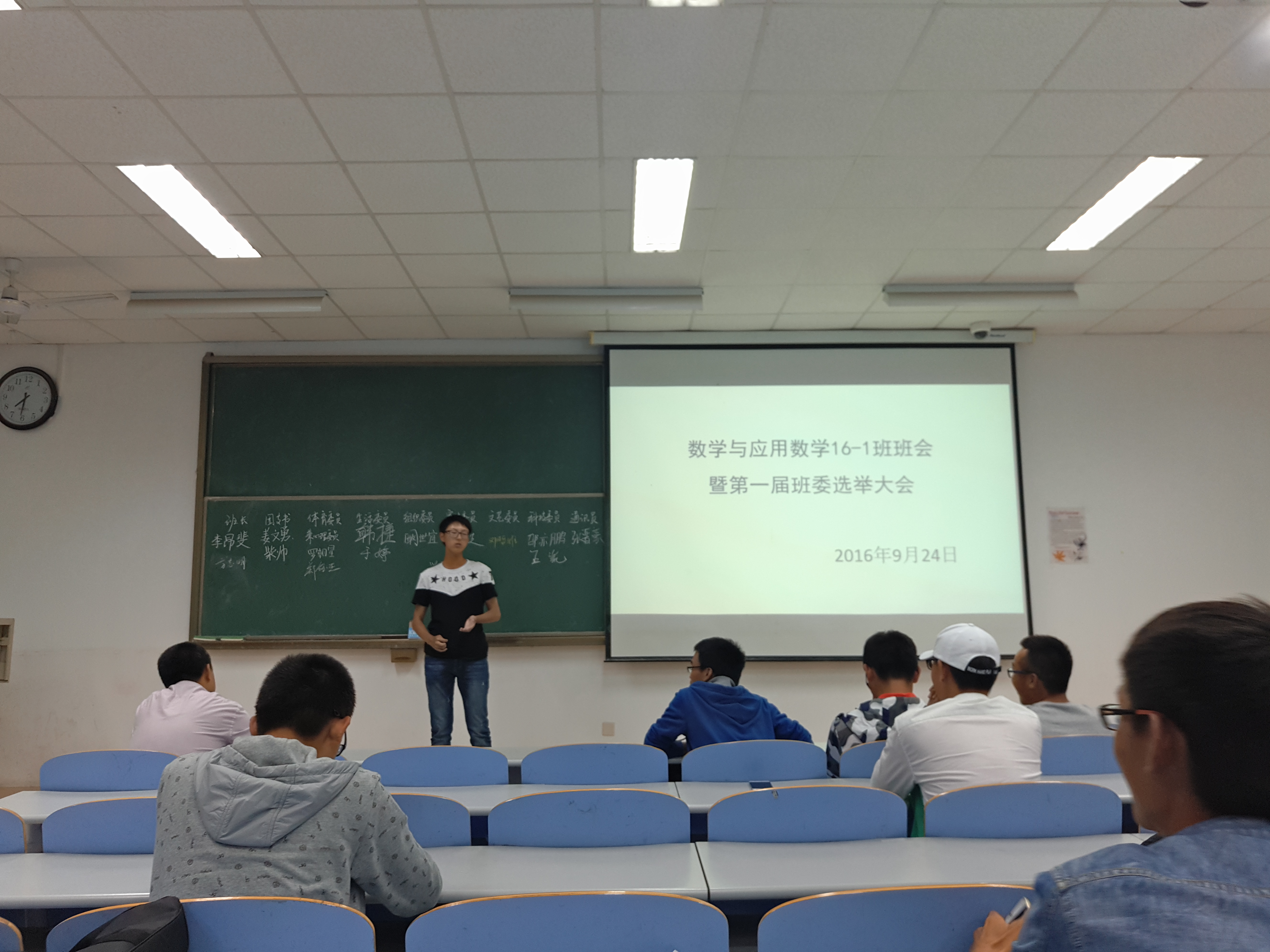 (竞选者演讲 陈楼摄) 为了密切班级成员的联系,共同建设先进班级体。9月24日由代理班主任陈楼、陈嫣然组织的班委选举大会在南教109教室开展。本次班会特别邀请了班主任陈永刚。 晚上七时,代理班主任陈楼、陈嫣然和班主任陈永刚向大家生动具体地介绍了以班长、团支书为中心的班委会班级管理方式。随后,各位同学针对自己的想法进行班委的报名选举。其中,班长、团支书、体育委员、生活委员等职位的竞争较为激烈。在班委的竞选过程中,竞选同学表达了自己对于班级建设目标的决心和对为同学服务的愿望。经公开选举,最终选定李昂斐为班长,姜文勇为团支书等十个人组成的数学1601班第一届班委会。这次班会是新生入校以来第一次正式开展的班会活动,会上,陈永刚说“大家就像一个点,只有我们相互合作才能构成一条线,才能形成一个面。” 班会的最后,代理班主任陈楼、陈嫣然向各位班委分享了班级管理经验和一些班级管理工作出现的问题及应对方法。 这次班会的圆满结束,为和谐班级体的建设提供了良好的开端,同时也为新生班级建设先进班级体和优良学风班的目标迈出了第一步。 (SUNBET申博 崔明芝 陈楼) (审核 李珂) |