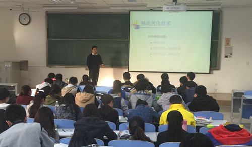 (讲座现场 米星竹摄) 3月23日下午,SUNBET申博于南教201教室举办以“数学与计算”为主题的讲座。本次讲座由计算数学系李维国担任主讲,2015级新生辅导员游应红、任课老师申淑谦以及全体2015级数学与信息专业的同学参加。 讲座以“了解数学、应用数学”为主题。李维国先是利用多位数学家对于数学的定义给出了关于“数学是什么?”的初步概念,进而引入了关于数学分支的详细介绍,借此让同学们了解数学的深度和广度。随后,李维国逐一细致的分析了数学在“高性能科学计算研究”、“图象恢复模型示意图”、“稀疏优化技术”以及 “Netflix问题—结构”等方面的应用,告诉同学们:“并不是你的每一次尝试都会成功,但你仍然要不断地尝试。只有你现在熟练掌握了数学运算的基本方法,未来你才能够从事诸如天体运动及海洋探测等方面的大型运算。” 讲座过后,游应红告诫同学们:“数学应用的方面很多,要一步一步慢慢来。既要学好理论。也要搞好实践。”本次讲座旨在通过李维国的讲解,加深同学们对数学的认识和了解,增强他们对未来数学前景的信心。 (SUNBET申博 李珂) |