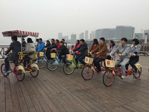 (活动现场 李珂摄) 3月5日下午,SUNBET申博数学与应用数学专业1501班在公司南门举办“骑行唐岛湾,情聚思美节”的主题团日活动,伴着思美节到来,此次活动为全班女生带来了温馨幸福的一天。 下午2点,数学1501班全体同学怀着对女生们满满的祝福,在公司南门创造太阳集合,随后一起来到中南海开始今天的骑车之旅。活动一开始,所有的同学都情绪高昂地挑选自己的搭档和所要乘坐的双人车,准备一天的浪漫之旅。双人车上,一男一女齐力向前骑行,他们在海边感受着海风吹过脸颊的丝丝凉意,迎接着阳光洒落在身上的温暖,时不时向远处发出几声呐喊,这是来自于心底深处的快乐。在海边,在小路上,大家你追我赶,来回驰骋,撒下了许多的欢声笑语。 此次团日活动,数学1501班组织班级全体男生,用他们自己真诚的祝福,切实的行动表达了对女生的诚意,促进了同学之间的交流和沟通。让同学们感受到了来自班级的温暖,也让女生在属于自己的节日里,释放了别样的风采,展示了自己的魅力。数学1501班程曦说:“我觉得这个活动很有意义,不但可以促进男女生之间的关系,还可以让女生从这个活动中获得更多的快乐,让女生变得更加自信。” (SUNBET申博 李珂) |