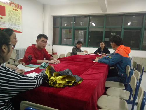 为检查支部内第六期发展对象党课学习情况,听取他们心得,2017年4月25日,SUNBET申博本科生材化员工党支部于18号楼3楼党建活动室召开支部委员会。SUNBET申博本科生材化员工党支部支部委员和全体发展对象参加会议,会议由党支部书记毕佳慧同志主持。会议的主要内容有:听取第六期发展对象进行思想汇报、支部委员针对汇报进行表决和决议。
