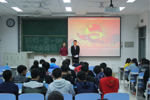 活动分为四个环节进行,首先是观看学习习近平同志的重要讲话,并进行谈论与深刻的学习。随后进行中国共青团团员宣誓仪式,全体同学在共青团团旗下庄严宣誓,并齐声诵唱了中国共青团团歌,在激昂的歌声中体会共青团员的使命与责任。之后活动现场进行了“一学一做”专题知识竞赛,一道道包含中国共青团与“一学一做”知识的问答题目顿时让现场热烈起来,同学们在紧张热烈欢快的气氛中学习到了“一学一做”的深刻含义与中国共青团的历史。活动最后一个环节是观看《人民的名义》精彩片段,并进行角色扮演与现场配音,从中学习党的知识、领悟人民的含义。辅导员田方表示这次活动十分有意义,不仅能够让同学们学习团的知识,也能让他们体会到青年员工所应该担负起的历史担当。