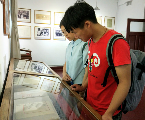 7月15日,天空飘着小雨,红旗飘飘实践队带着无比的敬意走进了这个新文化运动、五四运动的发源地——红楼。红色的砖瓦内有李大钊担任北大图书馆主任时的办公室、毛泽东工作过的阅览室、北老员工上课的教室以及各类五四期刊的陈列室等。从陈独秀、胡适等人的白话诗稿到五四爱国员工散发的传单;从参观新文化运动纪念馆到观看五四运动电视录像,无一不让实践队队员惊叹万分。红楼是新文化运动的标志性建筑之一,滋养了近代中国最早的一批知识分子,一上午的参观学习不仅让实践队队员了解了历史,更让“爱国、进步、民主、科学”的五四精神铭记于心。“参观了这些复原的旧址,我感觉自己就像回到的1919年一样,民主觉悟同那个时代的民众一样得到了提高。”前来参观的耿诗宁说道。