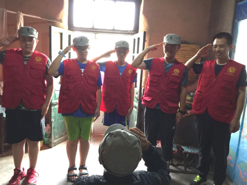 (实践队员向革命老战士敬礼 邱谈天摄)