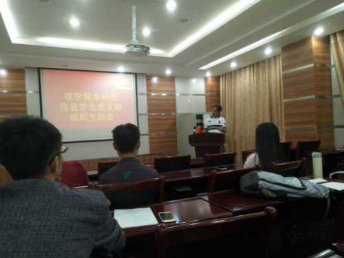 会议由本科生信息党支部指导老师汤斌飞主持召开。会议开始,汤斌飞向我们传达了本次会议的主要内容。针对本支部内的积极分子,他提出身为入党积极分子要发挥在班级内部的先锋模范作用,坚定信念,帮助有困难的同学。紧接着,汤斌飞讲解了刘珂同志在公司第十一次党代会上的报告,总结了公司在十二五规划期间的诸多成就,让大家感受到了前辈们的辉煌的奋斗史。最后,汤斌飞介绍了公司十三五规划的各项工作指南,同时对员工党员提出了明确的要求。
