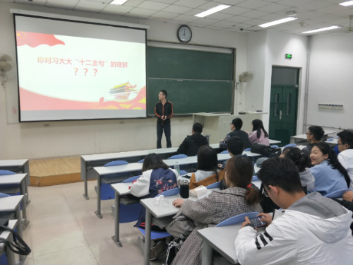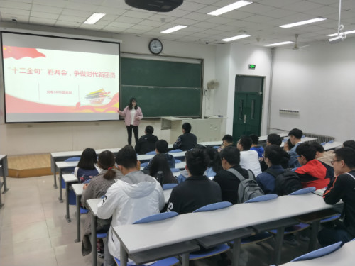 会议伊始,刘雨璇带领全体团员观看两会相关视频,随后她就习近平所说的“十二条金句”的含义及其同当代老员工和共青团员之间的联系进行讲解,促进支部成员对党和国家工作重点的了解,让团员们全面了解两会精神。最后,刘雨璇就“你对十二金句的理解”和在场的同学展开交流。入党积极分子郝宇川说:“‘十二金句’令人为之振奋,让国家的魄力深入人心,同时也提醒我们老员工做好准备,随时为国家贡献力量!”