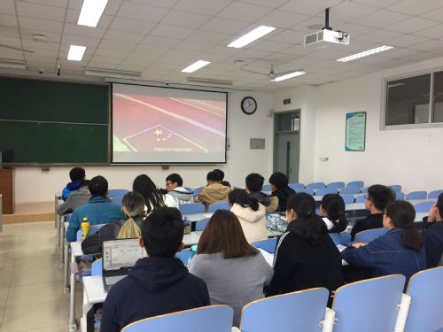 活动伊始,孙梦皎就本次活动进行了简要说明,她表示,《厉害了,我的国》结合党的十九大精神,将祖国发展和成就以纪录片的形式第一次呈现在大银幕上,全面反映党的十八大以来中国取得了改革开放和社会主义现代化建设的历史性成就,为深入开展“不忘初心、牢记使命”主题教育、学习贯彻党的十九大精神提供了生动教材。随后,班长李函博为大家播放影片。观影过程中,所有同学都聚精会神,通过影片感受中国的发展。大家不时与周围的同学就影片内容进行讨论,感动之处,教室内响起了阵阵掌声。最后,孙梦皎对本次活动进行总结,并要求班级内以宿舍为单位提交观后感。
