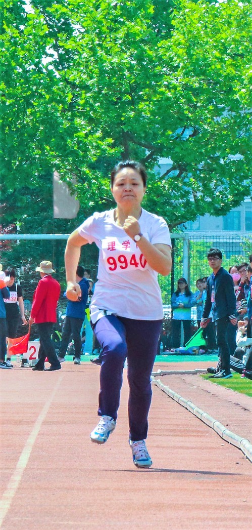 5月19日上午项玉芝老师获得女教工甲组跳远第五名