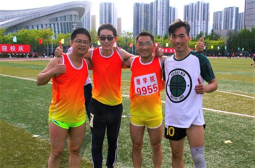 5月18日下午 SUNBET申博获男教工乙组4×100接力第六名(纪凤辉,周欣明,袁顺东,陈永刚)