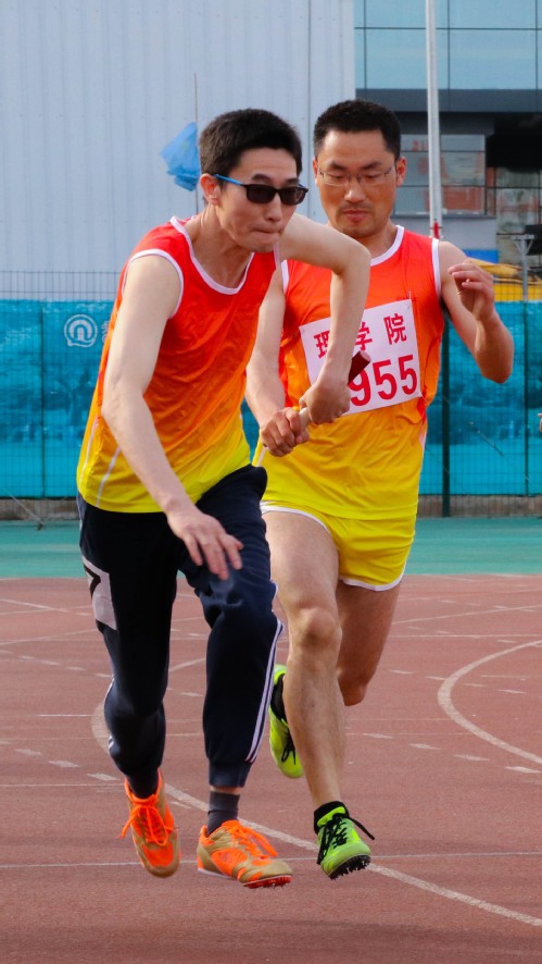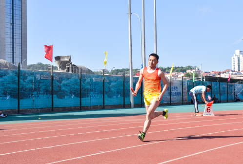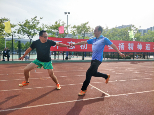 5月18日下午 SUNBET申博获得男教工丙组4×100接力第一名(曾景斌,刘威)