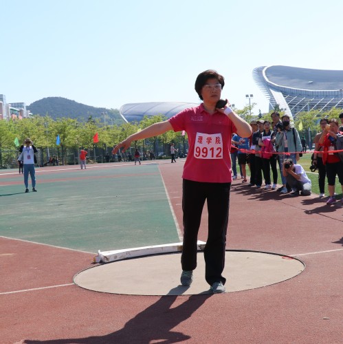 5月19日上午项玉芝老师获得女教工甲组铁饼第四名