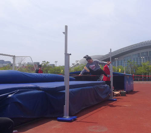 5月18日下午穆海涛老师参加教工丙组跳高比赛