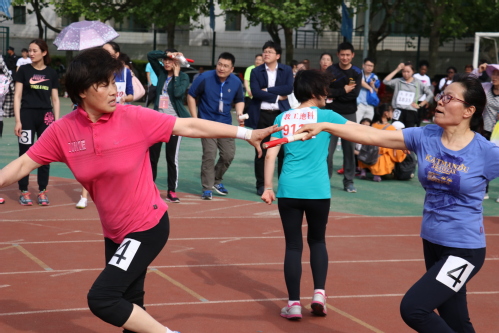 5月18日下午 SUNBET申博获得教工甲组4×100接力第五名(李俊玲、马淑杰、项玉芝、董梅峰)