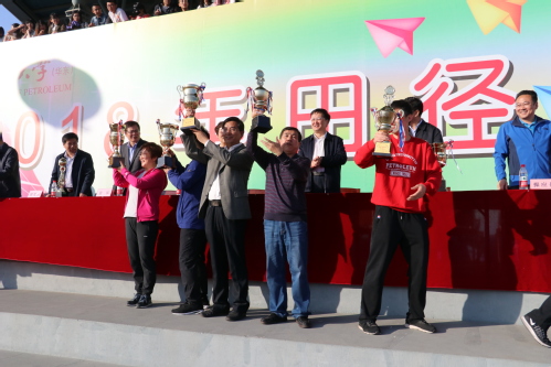 院工会主席罗立文领取教职工团体总分第六名奖杯