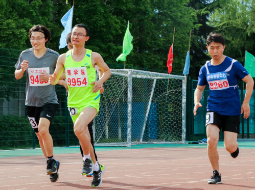 5月18日下午梁锡军老师参加教工丙组1500米比赛