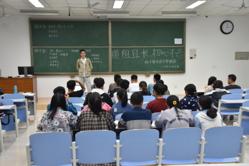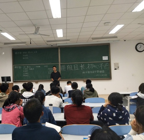 活动伊始,姜玉洁对本次班会的召开目的进行简要说明对所有人为班级作出的贡献表示肯定,并邀请上届班干部及团干部总结工作情况,其中,刘晨康对新一届成员提出了三点希望,“一、身在其位,自谋其政;二、以身作则,谨言慎行;三、开拓创新,努力学习”,并介绍了答辩和评分规则。随后,竞选人员逐次上台答辩,竞选者们结合自身的优势及对未来的展望进行答辩,向听众展现自己最出色的一面。在经过一定的思考后,全体人员进行不记名投票,最终杨欣鹏、杨鑫磊、姜玉洁均以20票以上的票数分别获选班长、学习委员、团支书的职务。最后,班长杨欣鹏表示:“感谢大家对我的支持,我将在在接下来的工作当中努力加油,不辜负你们的期望。