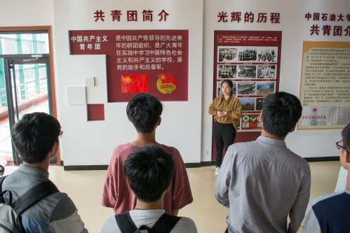活动开始,校史馆讲解员向各位同学简单地介绍了共青团以及其光辉的历程。从中国新民主主义青年团北京石油公司委员会成立以来,校团委始终坚持党建带团建,公司至始至终把团建活动作为重要工作。随后,同学们跟着讲解员的介绍参观了往年优秀团日活动以及杰出青年的照片。在讲解员的介绍下,我们了解到公司一直重视校园文化建设以及社会实践。在校史馆里还保存着许多优秀的学长学姐的创新成果以及志愿服务活动照片。