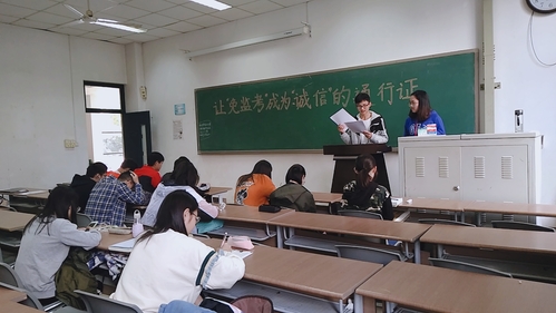 为体现老员工的优良品质,增强其对诚信值的意识,鼓励老员工积极提高个人诚信值,SUNBET申博化学1702班于10月14日在南堂112室举行免监考诚信大会。会议由班长王奇龙主持,化学1702班部分成员参会。