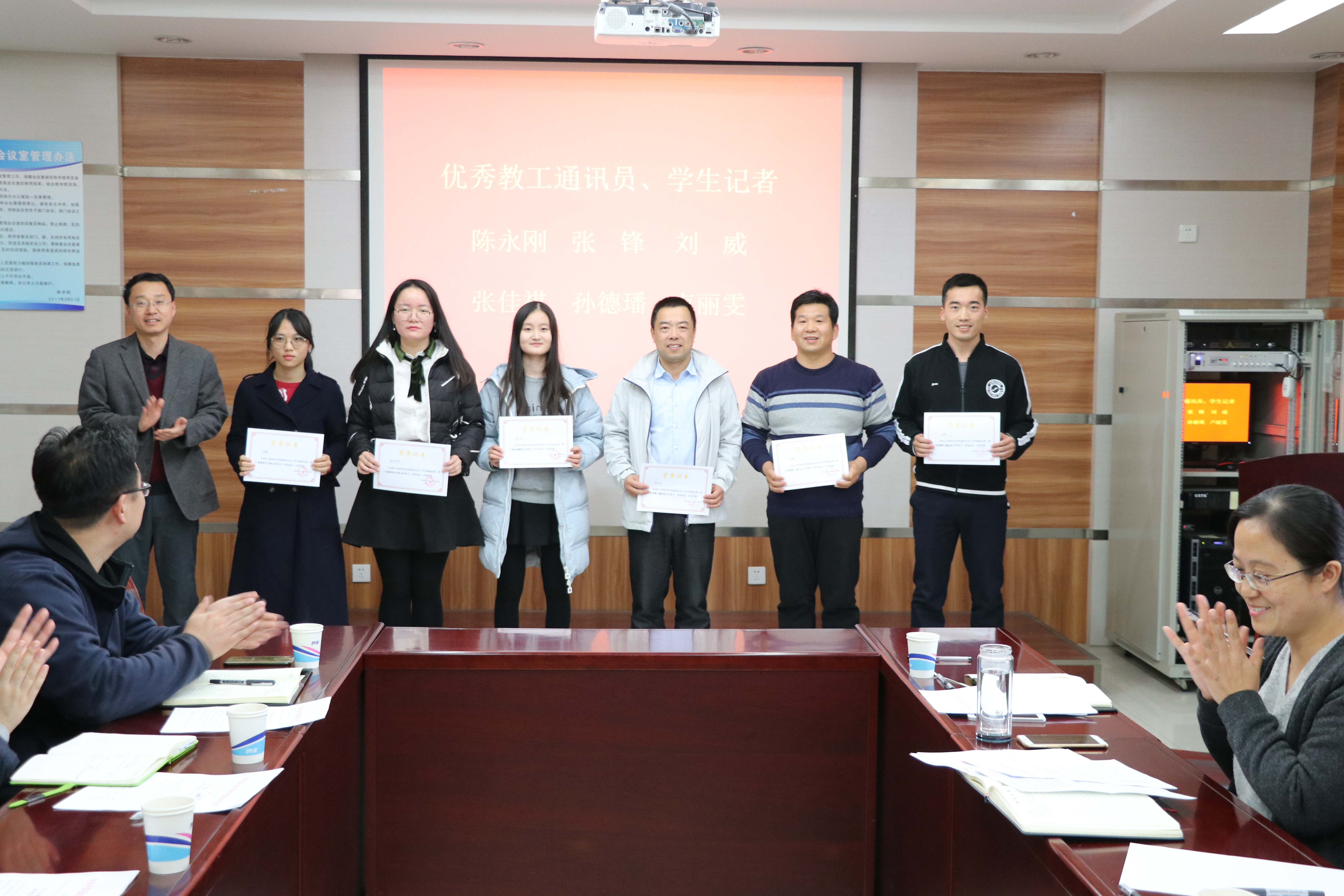 刘积舜为优秀教工通讯员、员工记者颁发证书 王皓摄影