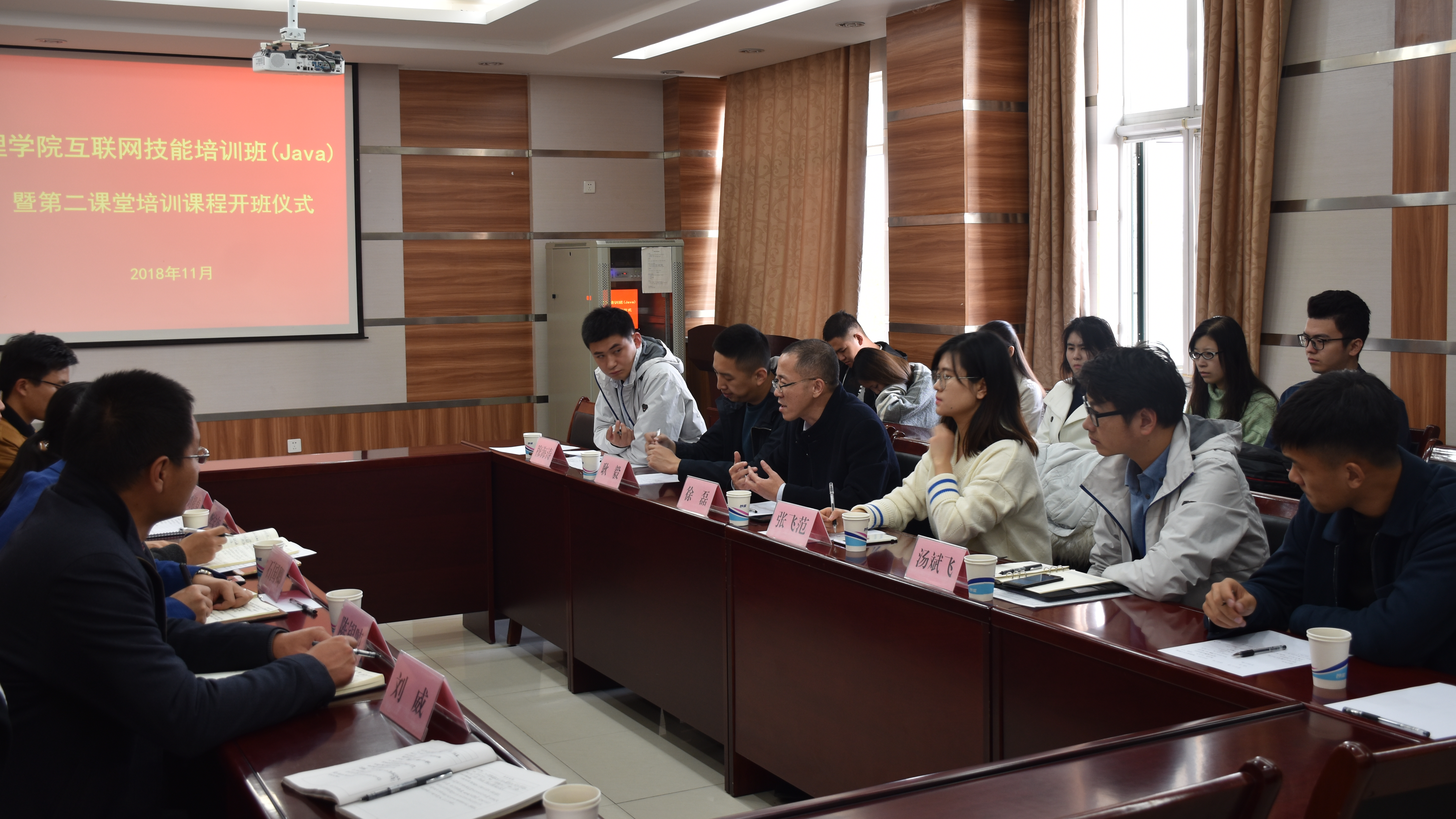11月12日下午,SUNBET申博在文理楼254室举办互联网技能培训班(Java)暨第二课堂培训课程开班仪式。金现代信息技术股份有限公司培训部总监徐磊一行受邀出席,校团委副书记石国卿、公司党委副书记李宝玺、团委书记陈银吨以及全体辅导员、部分毕业生代表出席会议,会议由李宝玺主持。