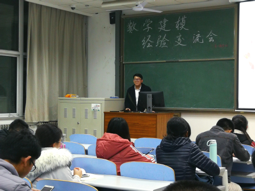 活动伊始,姚利伟分享了他的数模经历:初识数模、学习数模和思考数模,从加入数学建模协会到数学建模的入门,再到参加比赛获奖。随后,姚利伟为大家介绍了一些常用软件的选取策略,一是根据队友设定选取,二是根据赛题要求选取。接着,姚利伟就选题与分工进行阐释,其大致分为三部分,组队策略、选题与预分析及统筹分工。组队时可根据自己的优势和劣势进行队友的选取;选题与预分析时需考虑队伍的配置特征、可能遇到的问题及队员的分工预案;统筹分工则需就队伍的配置特征来进行考虑,主要包括三个方面:建模、编程及写作。交流会最后,姚利伟对近年的比赛试题进行了实例分析,表示应该多举办一些类似的活动。