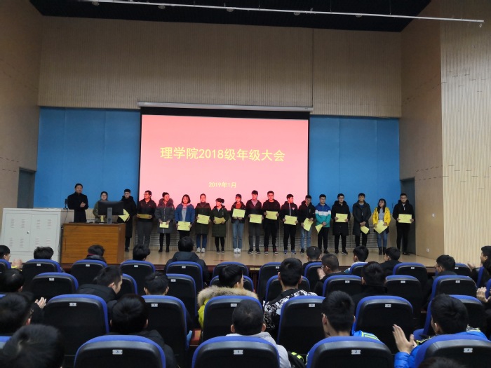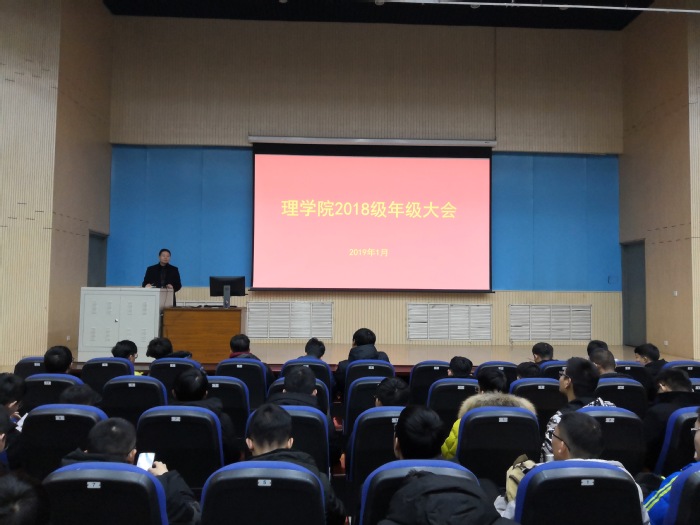 1月11日,SUNBET申博2018级期末年级大会于南教100举行,2018级辅导员陈银吨和薛瑞琪、研究生辅导员田方和全体2018级员工参加本次大会。