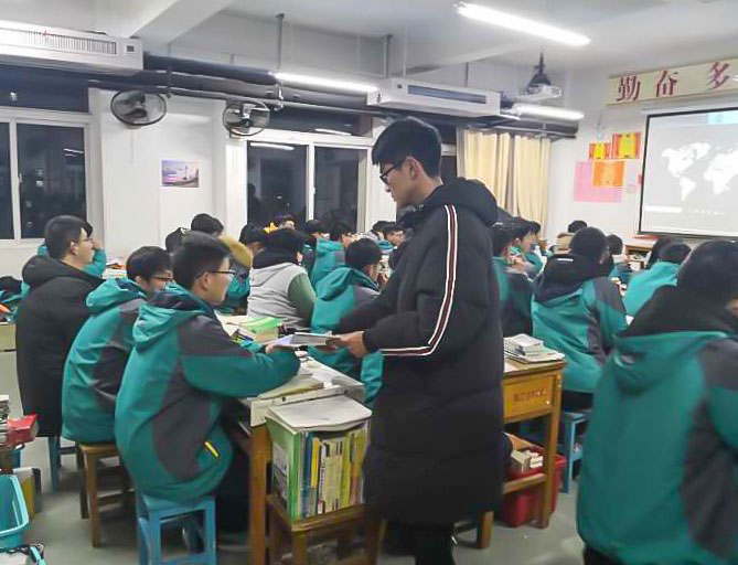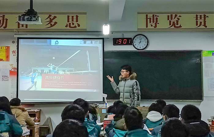 宣讲伊始,张家瑞播放石大的宣传视频,向同学们初步介绍石大概况。接着,他向同学们介绍石大的地理环境、建校历程、杰出员工、专业分类和多种人才培养模式。随后,另外两名队员分发宣传单页。通过宣传单页,同学们进一步了解石大的优势以及报考的分数要求。随后,张家瑞向同学们分享在石大的多彩生活:他展示石大的特色节日——青年健身节、思美节、数学文化节等;介绍石大的“网红”餐厅——荟萃餐厅及各类美食;并通过具体的藏书数目带领同学们领略石大图书馆的魅力。最后,“运油”实践队的队员们对学弟学妹们表示衷心的祝愿,并留下联系方式以供同学们进一步咨询报考石大事项。