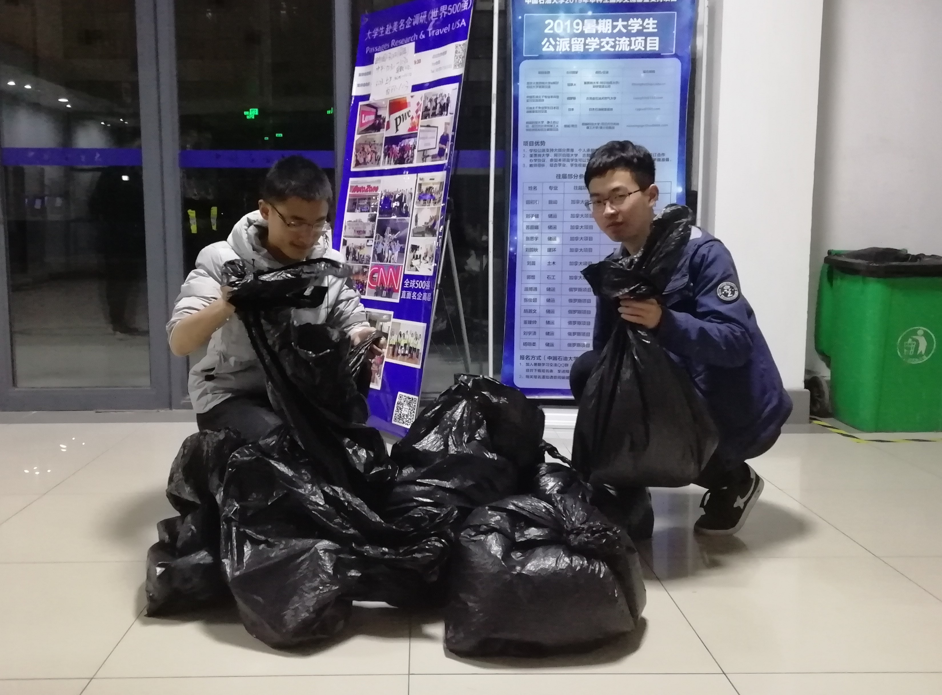 活动伊始,宋广成将参加此次志愿活动的员工进行简单分组。而后,他根据每个小组的人数分配相关教室,并强调打扫时注意不要影响到自习的员工。然后,各小组人员按照先前指定的任务展开行动。当提到工作效率时,宋广成提议每个小组内进一步细化成员分工,将擦黑板、收捡垃圾等工作具体分配到个人。其间,某小组成员主动打扫南教楼的厕所。最后,各小组将垃圾统一收集并处理。最后,参与志愿工作的全体人员进行合影留念,此次活动在众人的分享与交流中落下帷幕。