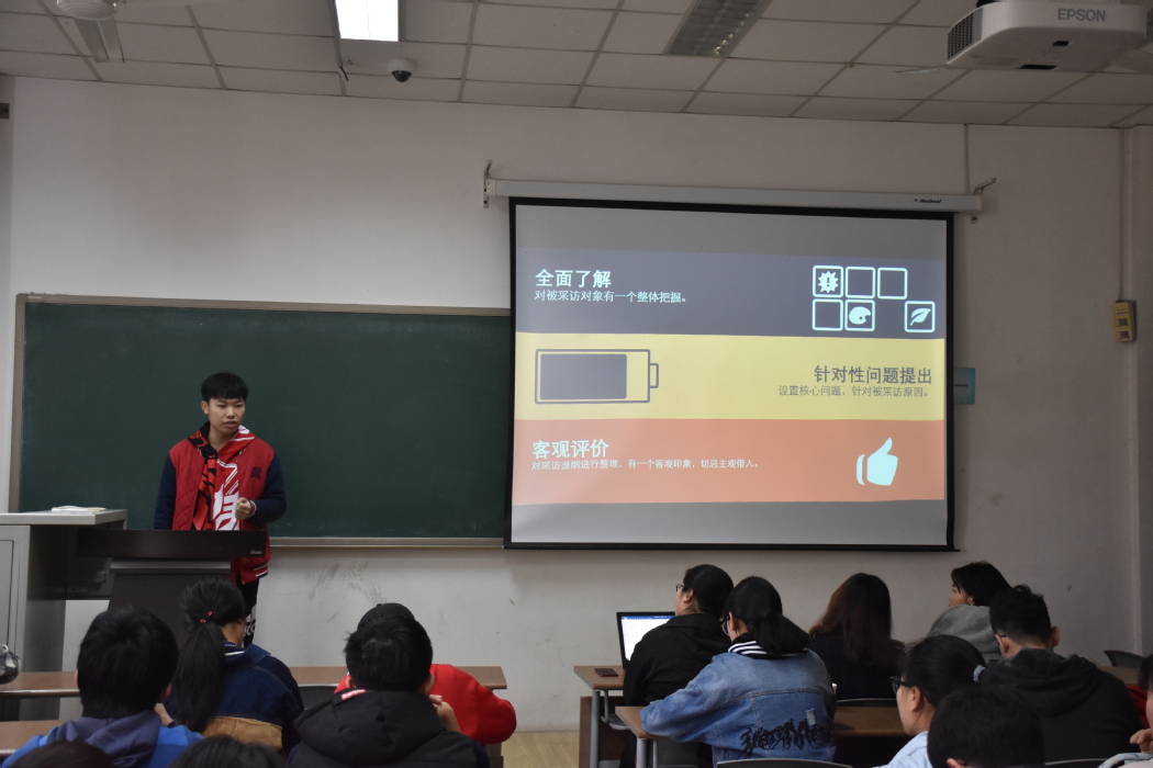 讲座伊始,孙德藩向在场员工介绍了采访的含义及前期准备工作的重要作用,并以身边同学的事例阐释了采访的实际意义。然后,孙德藩从准备采访提纲、记录采访内容等方面向在场员工介绍了采访的技巧。在提纲与采访的关系上,他指出,要根据提纲开始采访,根据采访充实提纲,要以提纲为框架,以采访对象为主,不断扩充甚至打破框架,进而形成最终文稿。关于撰写文稿,孙德藩强调了在撰写人物专访过程中要展现人物的个性,而非素材的堆积。