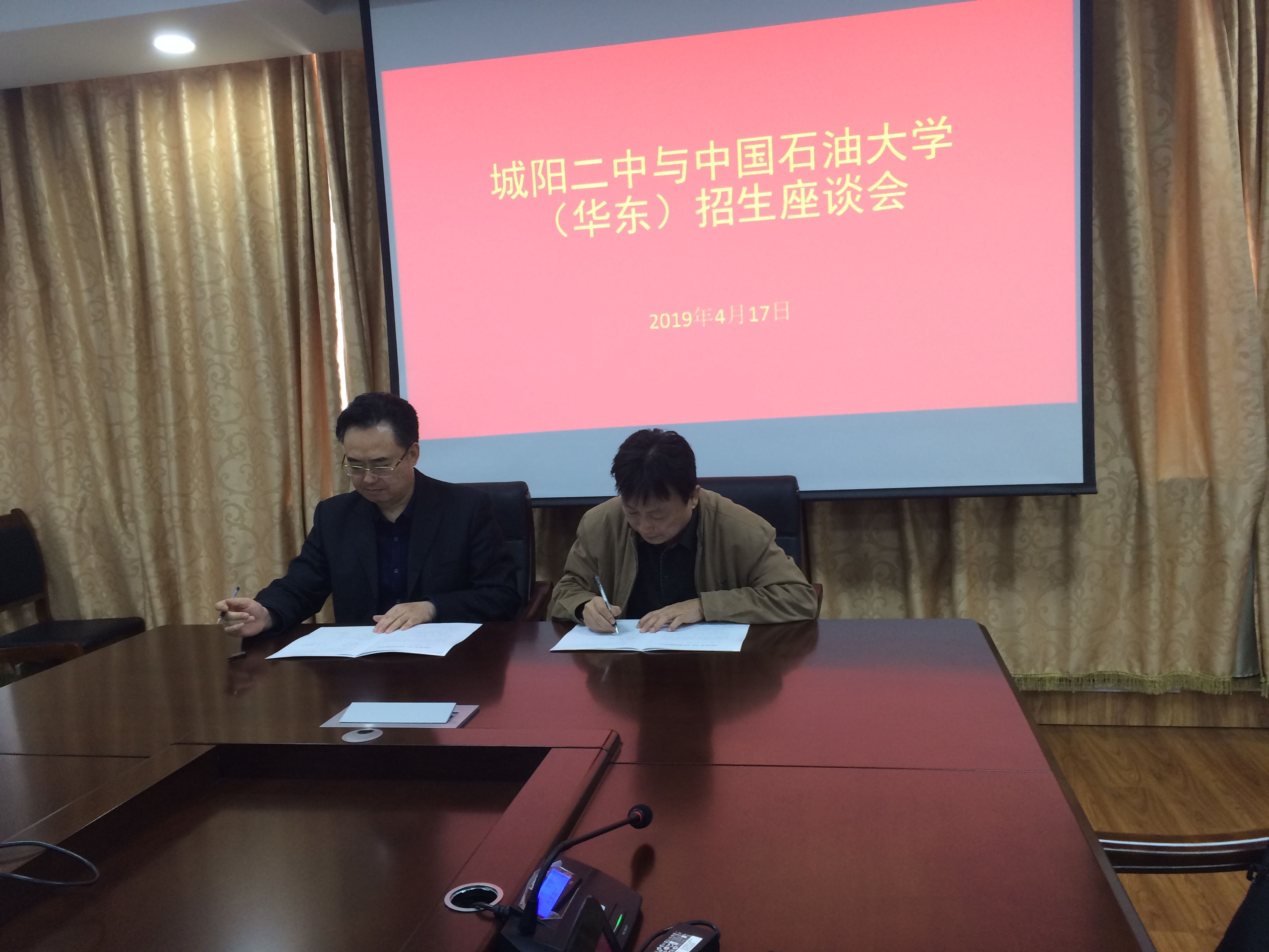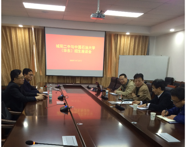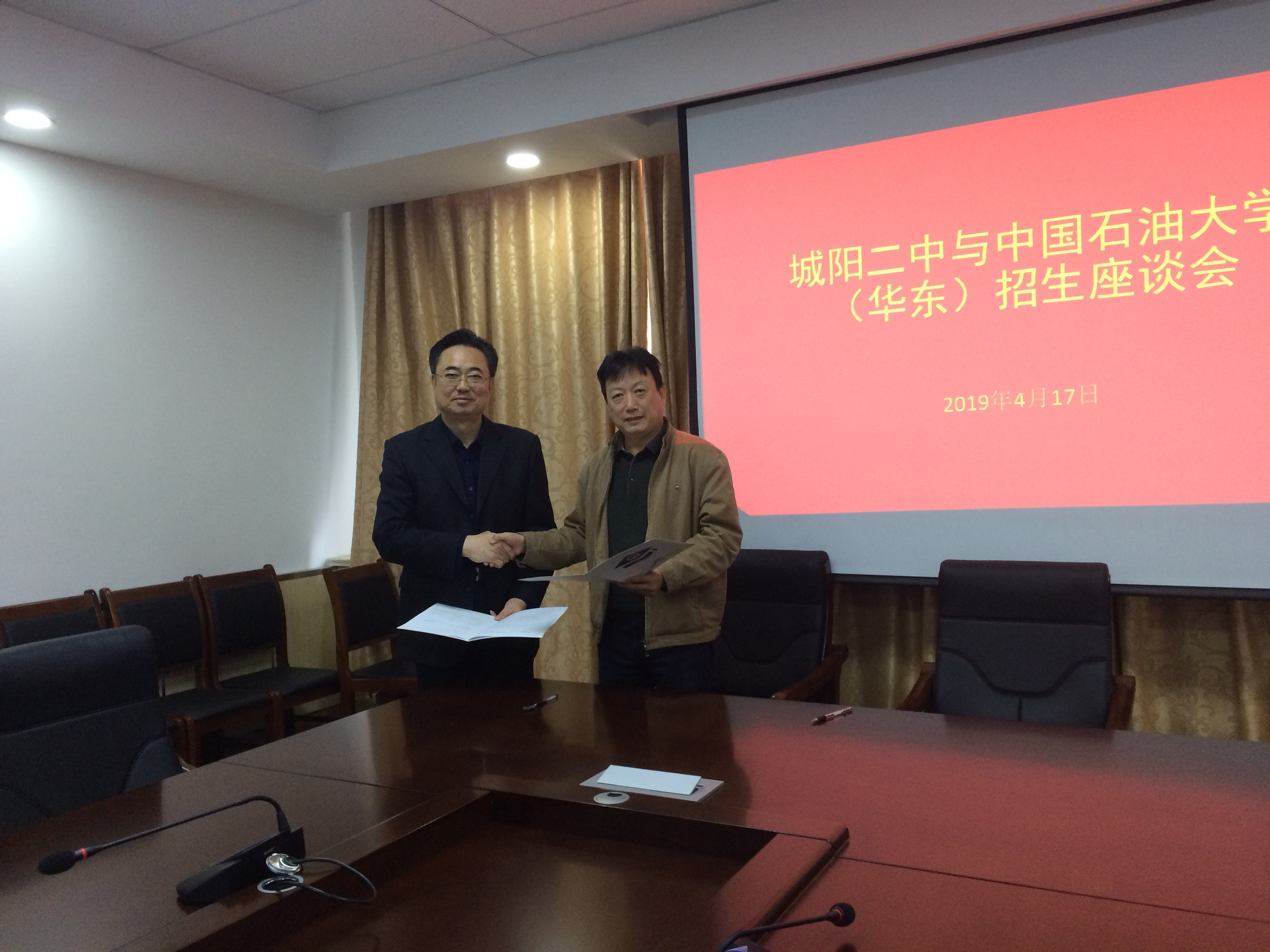 4月17日,青岛市城阳二中董事长崔显华,副董事长陈岩来公司交流调研。公司党委书记孙绪柱、化学系主任、副主任以及公司教务处招生办公室主任等相关老师参加了座谈。 座谈会上,双方互相介绍了公司的基本情况,交流了本科招生、公司宣传、毕业生就业等相关事宜。重点探讨了新高考形势下高中和高校面临的困难和解决途径。双方均表示希望建立多领域长期深入合作关系,实现共赢。最后,孙绪柱和崔显华签署优秀生源基地协议,城阳二中作为重点高中正式成为公司优秀生源基地。