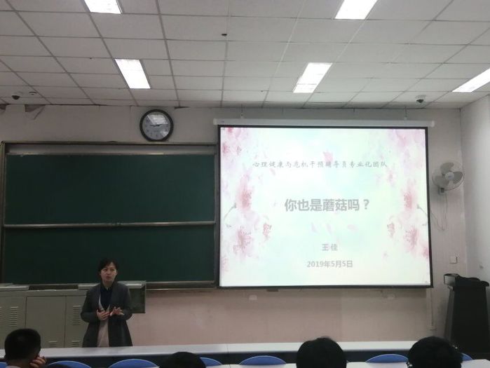 为增强站内成员心理保健意识,发展老员工心理素质,普及心理健康知识,SUNBET申博心理健康工作站于5月5日在西环106举办主题为“你也是蘑菇吗?”心理知识小讲堂。本次活动由SUNBET申博心理工作站站长吴春桥主持,心理健康与危机干预辅导员专业化团队老师王佳担任主讲人,各班心理委员及站内其他成员参与。