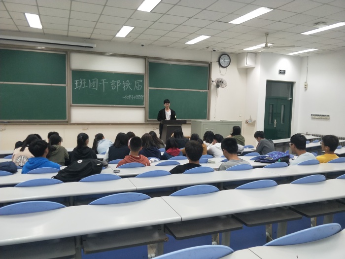 会议伊始,姜玉洁对本学期团支部取得的一系列成果表示肯定,但针对近期支部内部存在的问题,她要求全体人员逐一发言,并给出相应的原因及解决方法。随后,与会人员就班级归属感不强、凝聚力不足等问题,提出增加班级活动数量,建立相应奖惩制度等方法。之后,参与竞选团班干部的人员,就上述问题的解决方案以及具体的实施方法作为答辩内容,轮流上台发言。其中,万雨芬同学结合自身两年来参与并组织各类校级活动的表现,她表示,自己有信心也有能力担任班长这一职务。接着,经民主投票万雨芬担任班长一职,团支书任由姜玉洁担任。最后,姜玉洁进行活动总结,她表示下一步本支部应全力贯彻“三会两制一课”制度,并举办各类活动建立书香特色团支部,尽力评选为红旗团支部。
