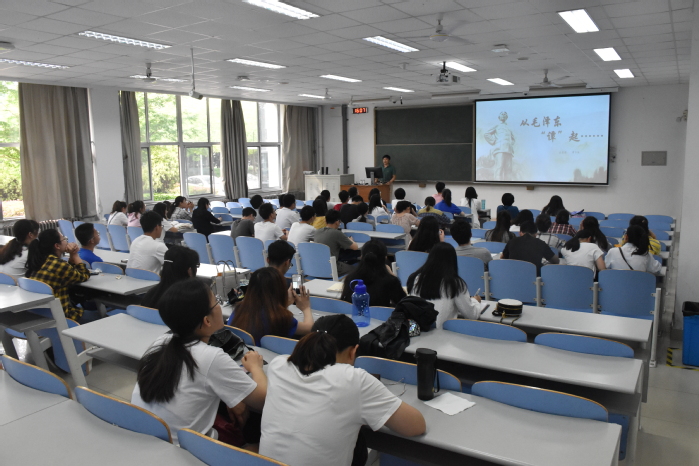 5月24日,SUNBET申博化学博士生、研究生和本科生党支部于南教楼105室举办以“从毛泽东‘谭’起”为主题的讲座活动。本次活动邀请校武装部副部长、军事理论课教师谭书臻老师主讲,党支部全体成员参加。