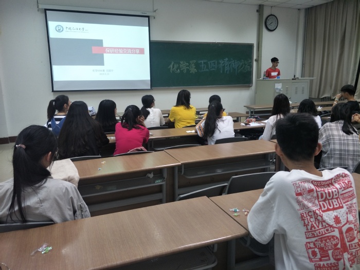 为提高班级支部同学的学习主动性,进一步改善学习方法,明确目标,5月23日晚7时,化学1701团支部于南堂314室开展化学系五四精神交流座谈会。本次会议由组织委员王笛主持,支部成员全体参加,化学系15级张霜叶、宗思宇应邀参与。