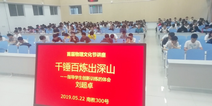 5月22日晚,在南教300号教室,SUNBET申博应用物理系副教授刘超卓就《千锤百炼出深山——指导员工创新训练的体会》作出报告。全校各专业近300名员工参加此次讲座。