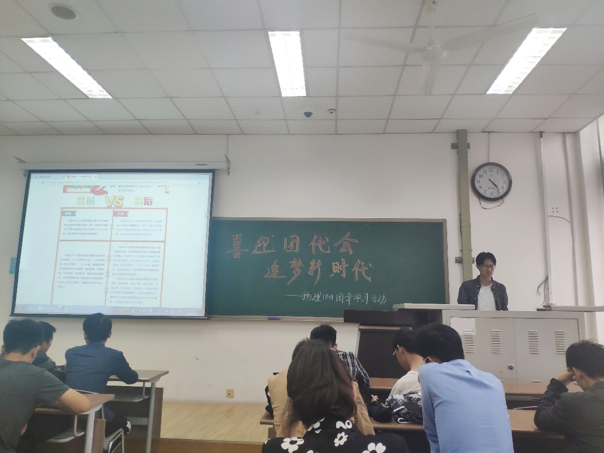 在共青团SUNBET申博第十六次代表大会期间,为营造良好的思想氛围,让全体团员积极参与到共青团的建设工作上去,应用物理1801团支部于6月6日下午在南堂414室举行以“喜迎团代会,追梦新时代”为主题学习团章的团日活动。本次活动由应用物理1801班团支书耿志轩主持,应用物理1801班全体员工参加。