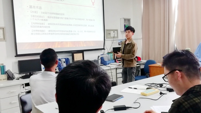 与会同学就以下十二个专题进行了研讨:气体探测器(林浩源,刘喜东)、闪烁晶体探测器(常泰)、半导体探测器(母旭东、向光鑫)、热释光探测器 (张俊鹏)、SRIM程序模拟离子在固体中的射程与损伤(王宸)、SRIM程序模拟研究离子在皮肤中的射程(宋文豪)、低水平放射性的测量方法(解东港)、中子探测方法(冯旭阳)、带电粒子的放射源活度测量方法(牛清霖)、带电粒子的能量以及能谱测量方法(刘文宇)、伽玛射线的强度和能量测量方法(刘卓凡)、核物理实验中的符合方法(左林)。