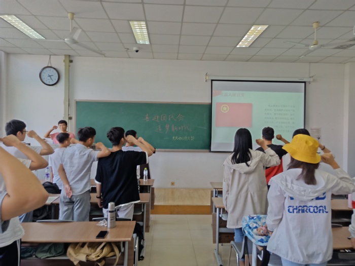 活动伊始,在团支书吉文强的领唱下,全体团员齐唱团歌《光荣啊,中国共青团》。随后,吉文强结合PPT讲解了共青团的历史和章程,叙述了团代会的流程和作用,继而让全体成员互相讨论自己对于团代会的认识。讨论结束后,由郭亚洲带领全员重温入团誓词,再次宣誓。宣誓完毕后,活动结束。光电1802班戈辰龙表示:“这次活动的召开让我更加深刻地体会到了共青团的凝聚力和号召力,虽然我还只是一个共青团员,但我也希望今后能为共青团做出贡献,尽我自己的一份绵薄之力!”