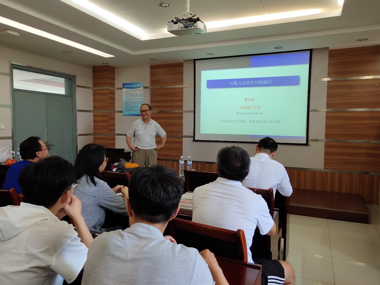 报告中,曹永林教授首先介绍了数字通信中的信道编码,以及与编码密切相关的有限代数系统,进而详细介绍了有限域上的分组纠错码、(非交换)群码、有限环上的具有特殊结构或对偶特性的线性码中的相关研究工作。最后,总结了代数方法解决编码问题的基本思想,及代数方法的局限性,并围绕代数在纠错码领域的应用及具有纠错码背景的代数这两方面指出可研究问题。曹永林教授的报告深入浅出,辅以恰当、形象的比喻,并与员工所学《高等代数》、《近世代数》相关内容类比、引申讲解,收到了良好的效果。报告会现场气氛热烈,会后参会人员与曹永林教授进行了进一步深入交流、讨论。