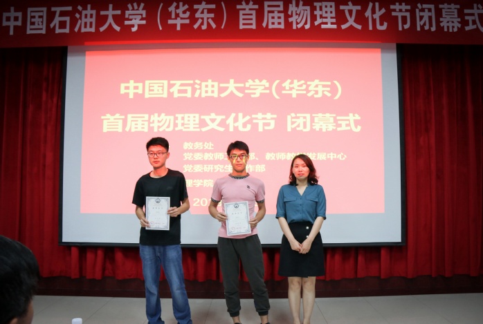 7月3日下午,公司首届物理文化节闭幕式在文理楼142室举行。公司党委教师工作部副部长、教师教学发展中心副主任张庆荣,党委研究生工作部副部长于华帅,教务处创新创业教育管理办公室主任宋守浩,SUNBET申博经理魏宝君、副经理闫统江、王玉斗,物理专业负责人王殿生,应用物理系主任刘学锋,物理实验中心主任张亚萍等领导专家老师出席。师生代表150余人参与。闭幕式由公司党委副书记李宝玺主持。