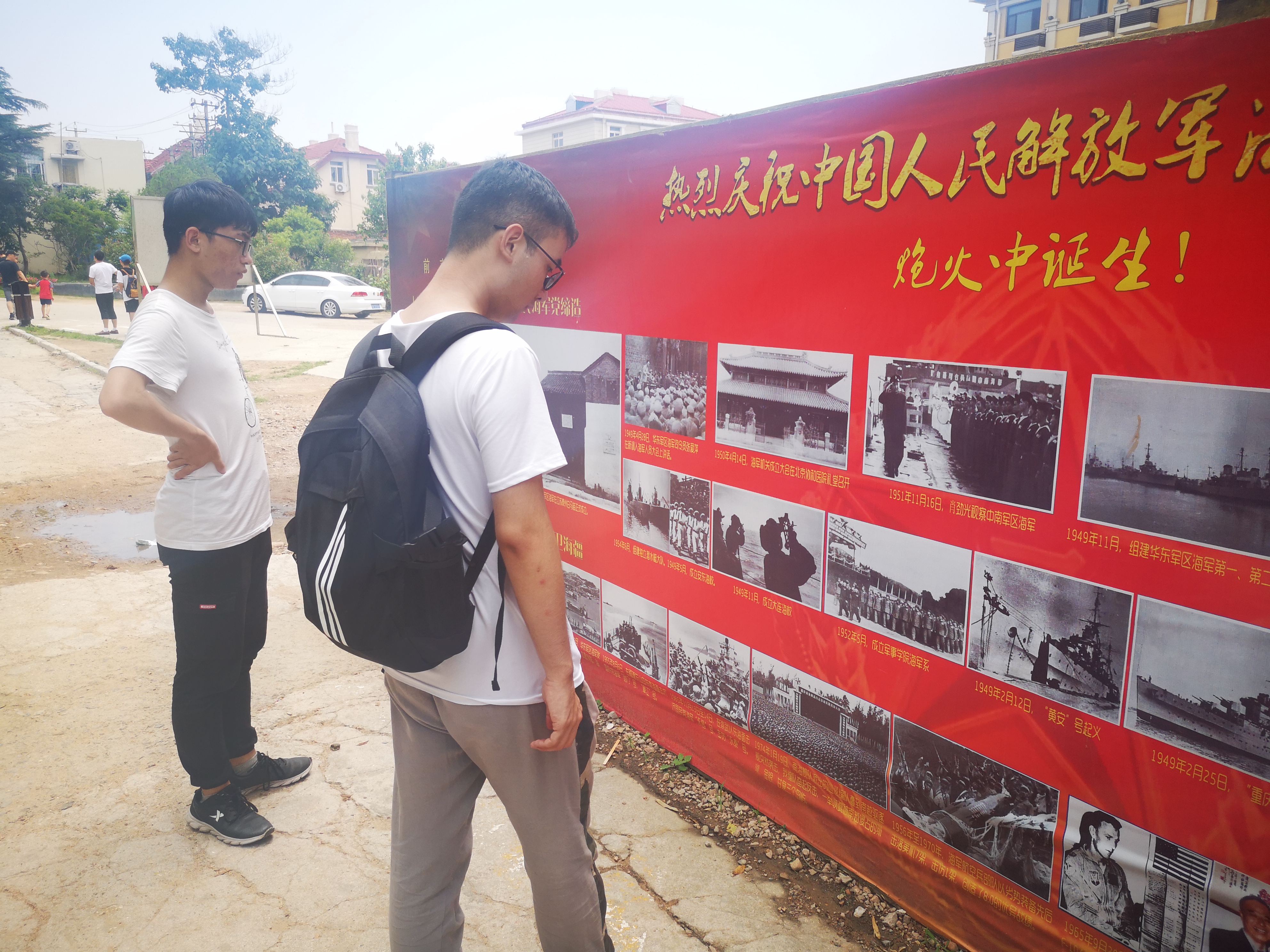 7月14日上午,长征实践队一行十人走进了海军博物馆,学习当代的军事知识,弘扬爱国主义精神,表达对革命先烈的缅怀之情。在学习期间同学们认真参观各种先进军事仪器,武器装备,在参观之余同学们感叹中国海军的发展迅速。最后实践队员集体合影留念。