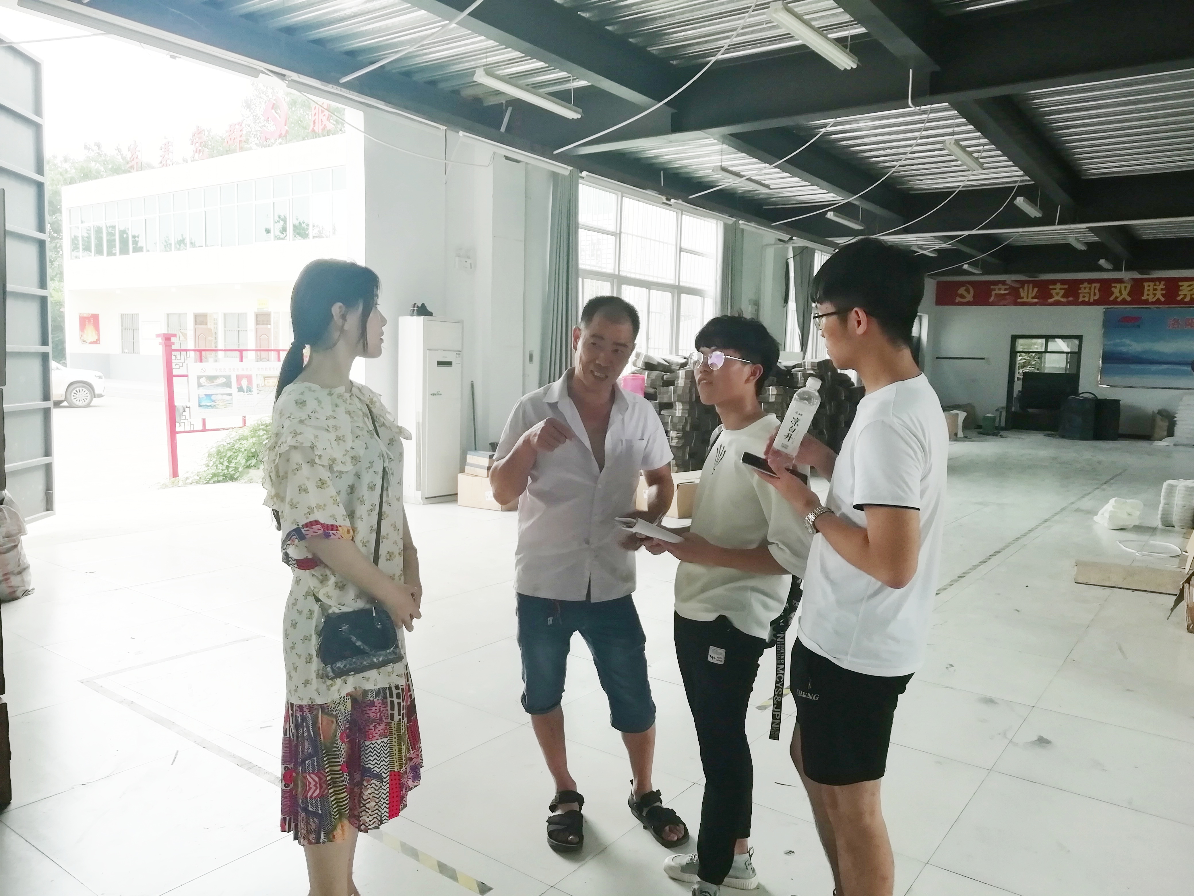 实践队第一站来到了扶贫模范村——李寨村。李寨村党支部书记为队员们详细地解答了关于目前该村发展的系列问题。书记向队员们介绍了近几年村内的特色产业项目,如产业为扶贫车间、屋顶光伏电站、养殖场、烟叶种植等,以及各种保障政策。这些优势让宜阳县有足够的信心完成脱贫任务。值得一提的是扶贫车间,它为村民们提供四十多个工作岗位,一天可生产3000多双鞋子,订单通过网上销售。普通工作人员一天能挣六、七十元,极大地提高了他们的工作积极性。