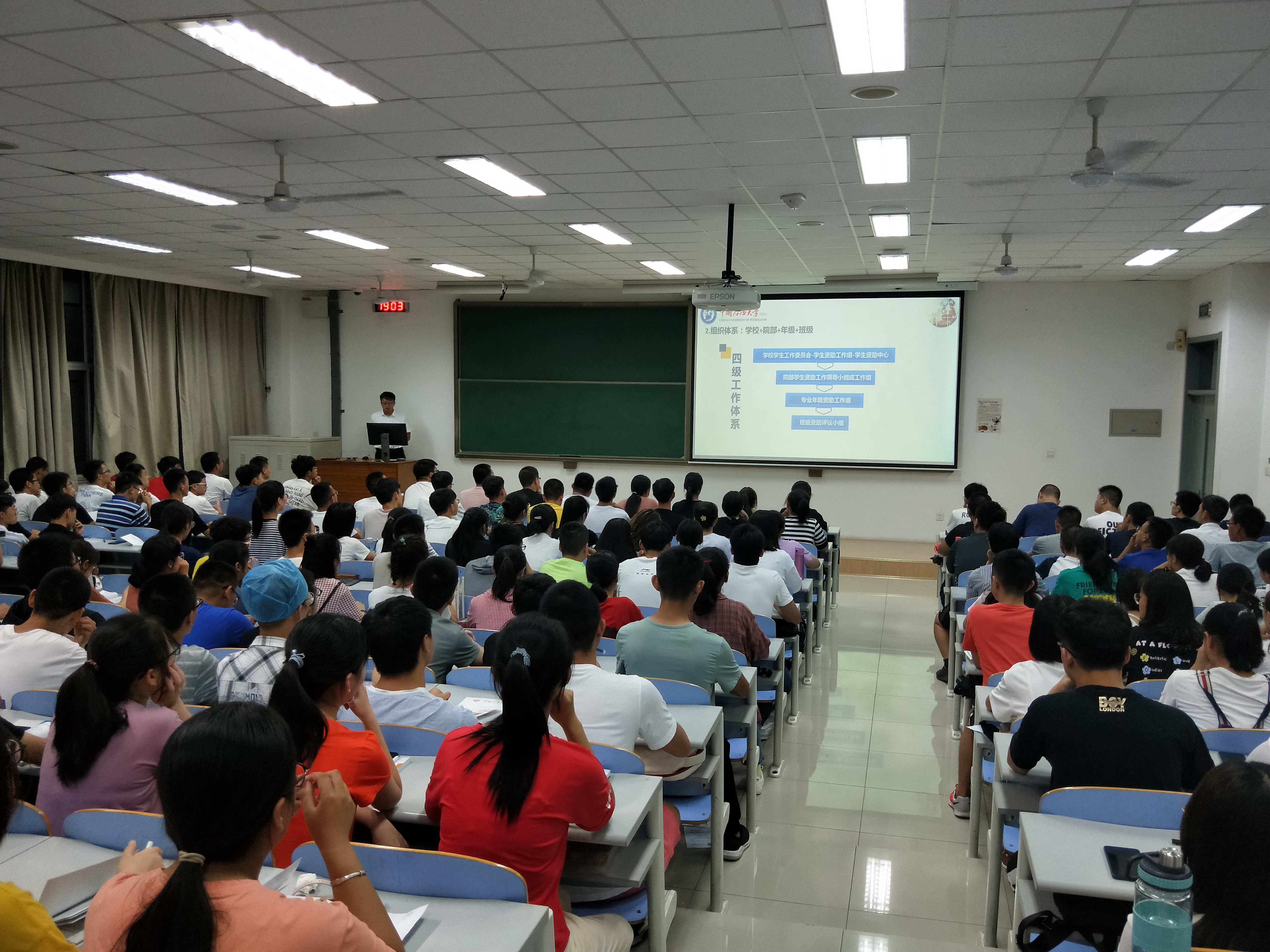 9月11日晚,SUNBET申博于南教502、503教室召开2019级新生入学教育大会,大会由SUNBET申博三位新生辅导员赵倩、刘冰、于鹏主讲,就19级新生关于“安全”、“资助”、“第二课堂成绩单”等方面进行讲解。