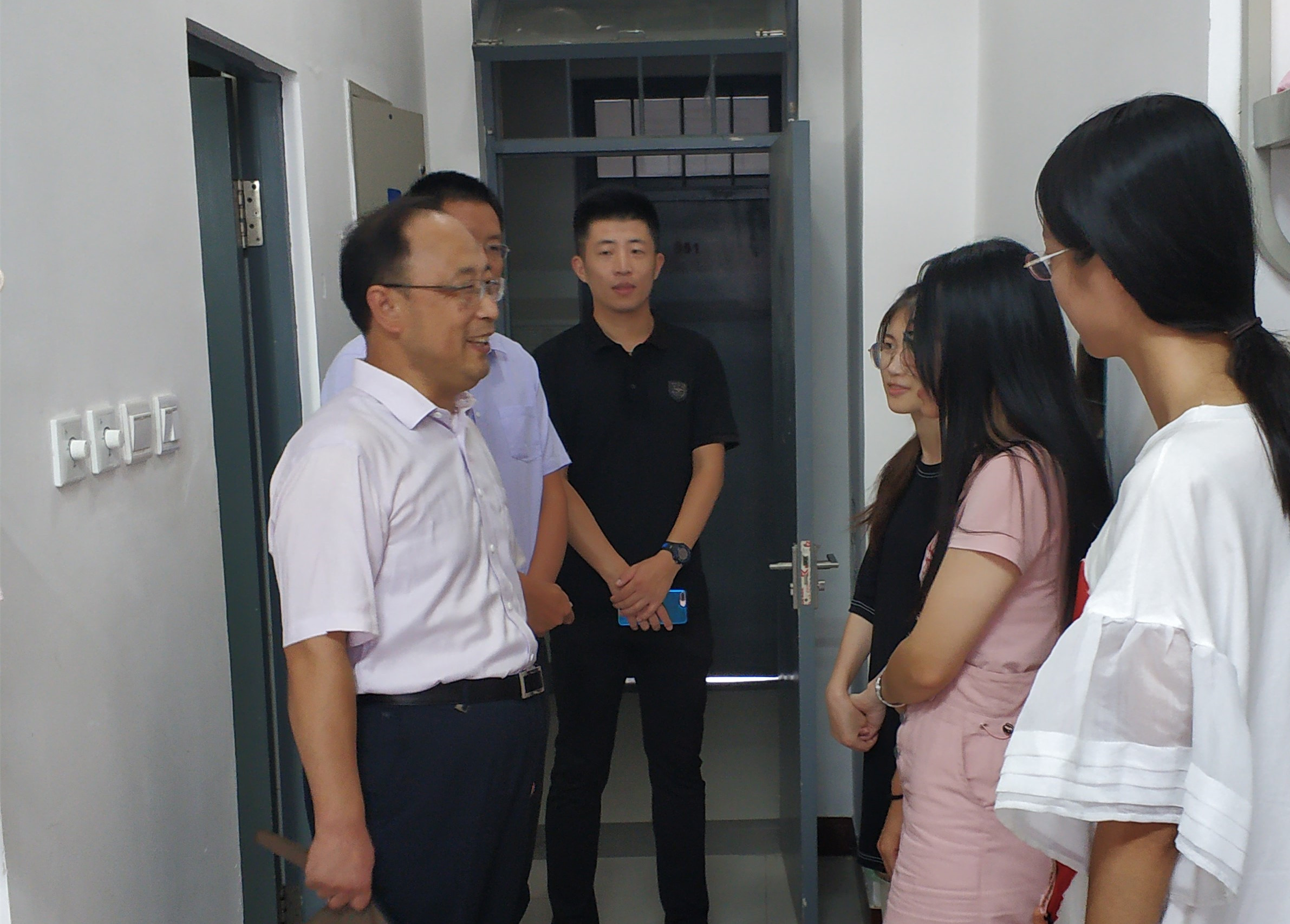 随着SUNBET申博新生报到工作圆满结束,9月10日下午4时,SUNBET申博经理魏宝君、党委书记孙绪柱、党委副书记李宝玺和2019级辅导员、刘冰、于鹏一行进入新生宿舍看望初至SUNBET申博这个大家庭的新成员。