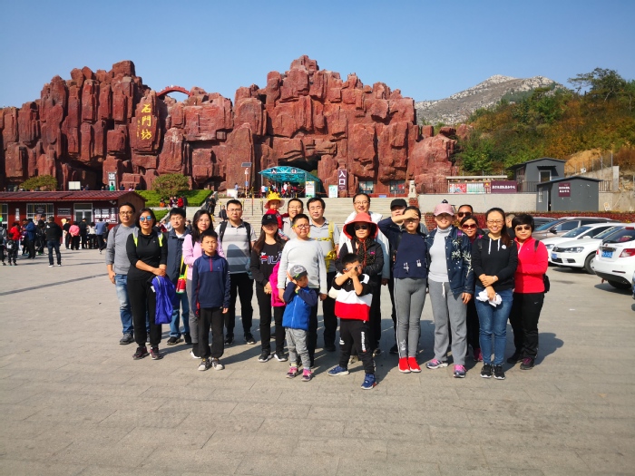 石门坊包括石门山、太平崮、天柱峰三大景点。古以“晚照”闻名,现以红叶著称,是国内五大红叶景观之一。首先,老师们从山脚下出发,沿着石阶进入景区。接着,在行进过程中,他们观赏沿途的风景。而后,老师们举目远眺,释放工作和生活方面的压力。然后,一行人依次游览了山洞、石刻、滴水石穿、晚秋等人文景观,同时感慨石门坊文化底蕴之丰富。最后,全体参加人员合影留念。
