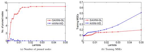 针对上述难题,王健团队从网络模型设计角度出发,在训练过程中考虑加性噪音和乘性噪音的同时加入Group Lasso正则项,实验结果表明该容错学习算法对这两种典型噪音都有很强的鲁棒性。对比L2正则子,Group Lasso正则子具有更易产生稀疏解的优势,但其非凸、非光滑的函数特性容易导致训练过程中产生振荡现象,该团队借助函数光滑逼近的思想有效避免了奇点问题,并严格证明了学习模型的渐近收敛性结论,保证了设计算法的合理性,为容错学习结构优化模型的设计提供技术支持和理论指导。