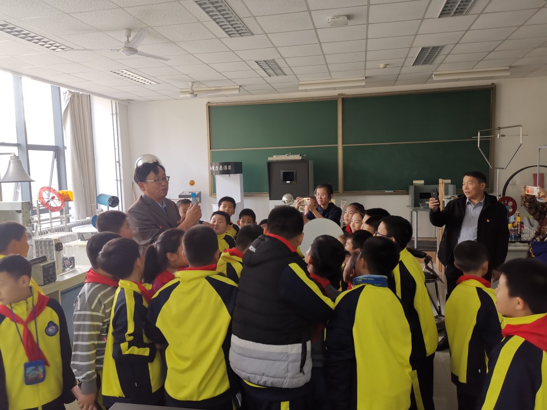 下午1点30分,我系全部党员老师以及珠江路小学409和506两个班级的小朋友,来到物理演示实验室。在听完详细的注意事项之后,孩子们兴奋地动手操作着自己感兴趣的仪器。那一双双因为好奇而闪闪发光的眼睛感染了在场的每一位老师,大家放下多年来为人师养成的矜持,象一个个快乐的孩子奔走于各种仪器之间,叮嘱孩子们注意安全,更为他们答疑解惑。每当孩子们因为奇异的物理现象而欢呼,因为理解了物理现象而显出满足快乐的表情时,我们就真切地体会到了为人师的快乐。“传道、授业、解惑”,这是我们的职责,也是我们的初心和使命。